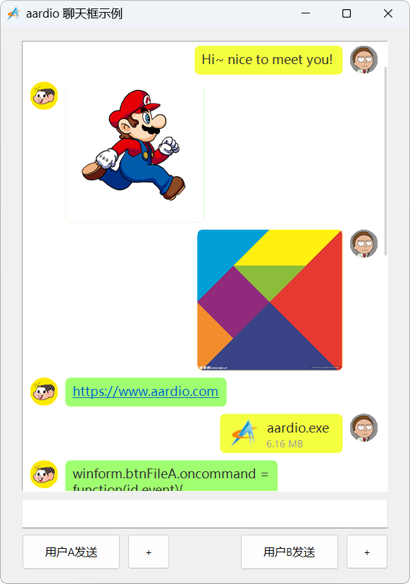 var winform = win.form(text="aardio 聊天框示例";right=463;bottom=631)